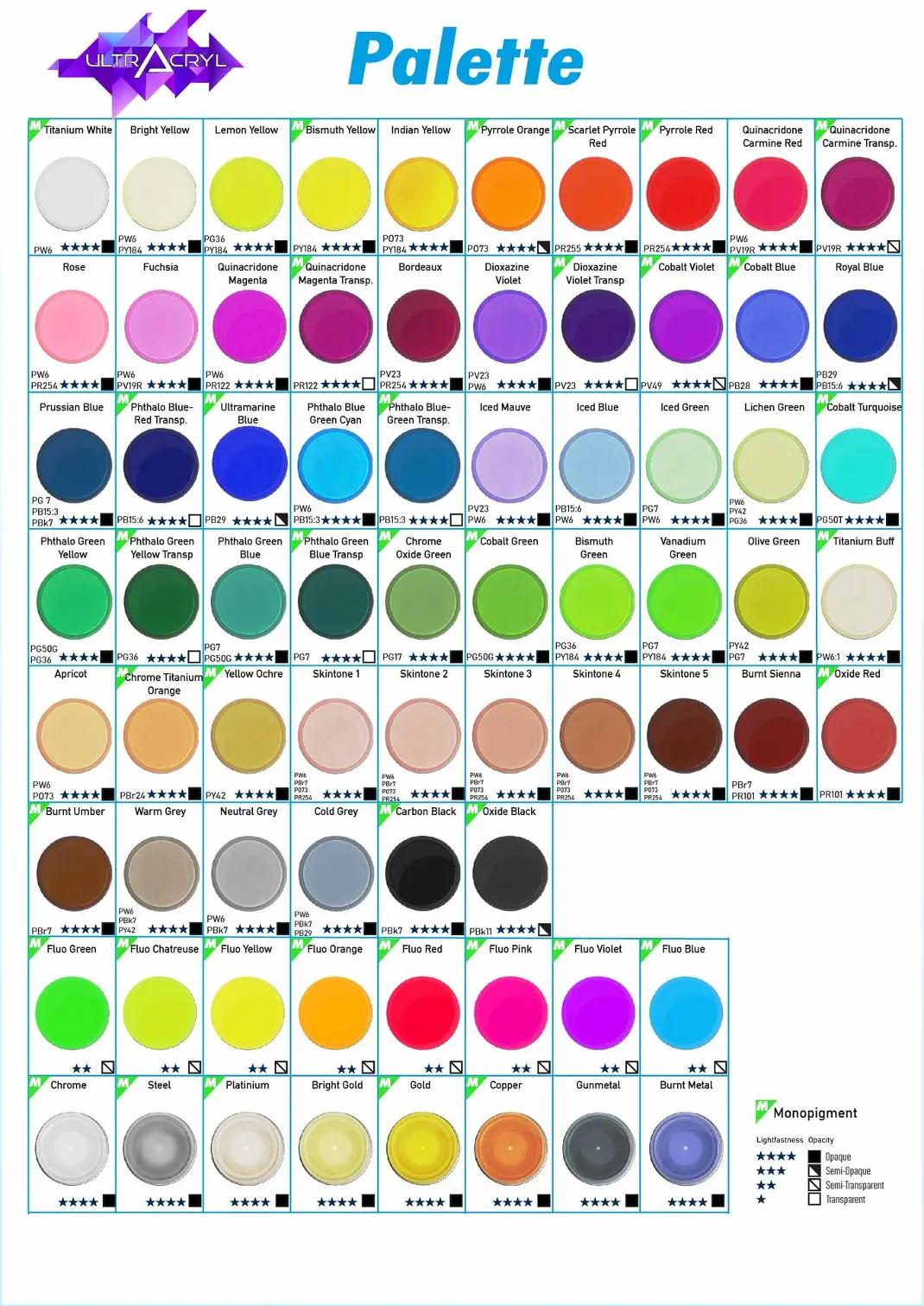 Die Ultracryl Farbserie wurde auf maximale Deckkraft optimiert. Dies umfasst insbesondere problematische Farbtöne wie gelb, hellgrün und orange.