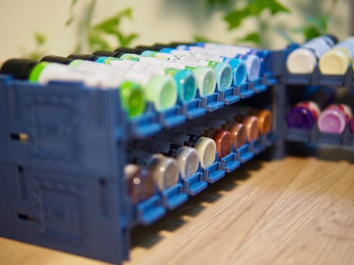 Viele Paint-Racks sind in Stufen aufgebaut und bieten in der Höhe keine Beschränkung. Daher sollte es kein Problem mit der Höhe geben. In der Breite sind unsere Flaschen etwas schmaler und haben daher oft etwas mehr Spiel, was jedoch ebenfalls kein Problem darstellen sollte. Bei allen anderen Formaten solltest du dir einen Meter oder Lineal zur Hand nehmen und mit den oben aufgeführten Maßen prüfen, ob diese passen.